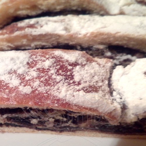 Klasický kakaový závin z kynutého těsta. Díky speciálnímu poměru surovin v náplni a špetce mouky je závin po upečení krásně šťavnatý a náplň v něm perfektně drží.